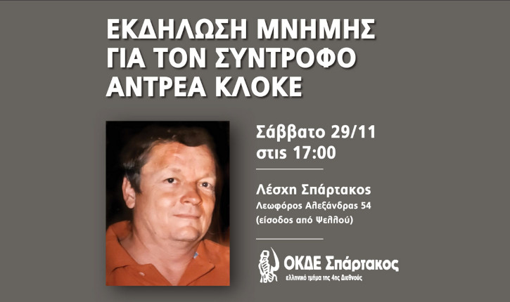 Εκδήλωση Μνήμης για τον σύντροφο Αντρέα Κλόκε