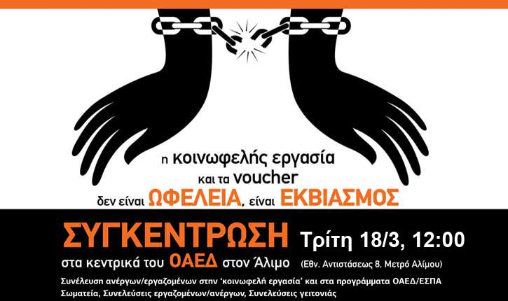 Κάλεσμα στον κεντρικό ΟΑΕΔ Αλίμου, Τρίτη 18/3 – 12.00
