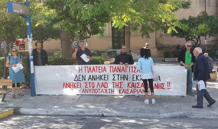 Η δημοτική αρχή αρνείται να διεκδικήσει τη δημοτική περιουσία και αρκείται να παρουσιάζει μακέτες ανάπλασης σε πλατεία που ιστορικά από την ίδρυση της πόλης της ανήκει, αλλά την έχει ιδιοποιηθεί ο Ναός της Παναγίτσας.