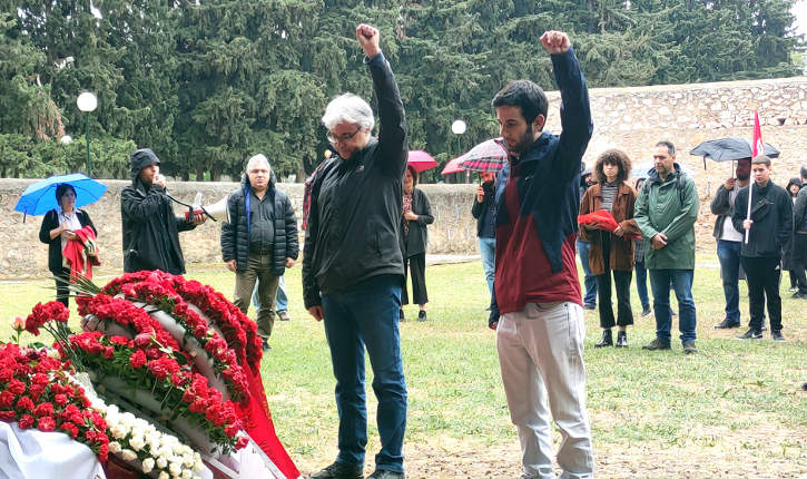 Στη συνέχεια με μαζική πορεία και συνθήματα οι συμμετέχοντες κατευθύνθηκαν στο σκοπευτήριο, στο Θυσιαστήριο της Λευτεριάς όπως έχει ονομαστεί από το λαό. Εκεί έγιναν σύντομες ομιλίες – χαιρετισμοί. Εκ μέρους του ΝΑΡ χαιρέτησε ο Λάμπρος Κυπριώτης, μέλος του γραφείου της οργάνωσης Αττικής του ΝΑΡ. Ακολούθησε ο Ιάσονας Μαρκάτος, μέλος του γραφείου του ΚΣ της νΚΑ. Στη συνέχεια στους συγκεντρωμένους μίλησε η Ιωάννα Τσιαμούρα, εκ μέρους της Γραμματείας της “Πρωτοβουλίας για σύγχρονο κομμουνιστικό πρόγραμμα και κόμμα” (διαβάστε εδώ το χαιρετισμό της Πρωτοβουλίας).