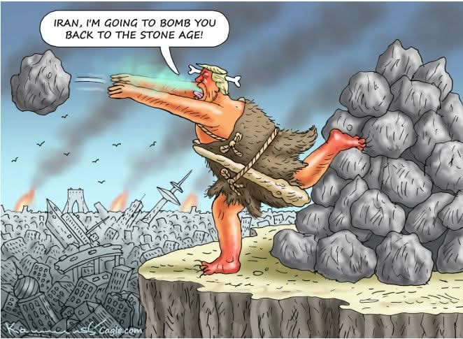 7. Η συζήτηση για το αν ο Τραμπ θα πατήσει το κουμπί και τα περί «λίθινης εποχής» δεν αφορούν μόνο ή κυρίως το Ιράν αλλά ολόκληρη την ανθρωπότητα. Είναι συμβολικό και ουσιαστικό ταυτόχρονα: Οι περιοχές του σημερινού Ιράν και της Μεσοποταμίας (Ιράκ κλπ), που αλέθουν και θέλουν να κάνουν σκόνη οι ΗΠΑ από το 1991, αποτελούν εμβληματικές κοιτίδες της συγκρότησης ανθρώπινων κοινωνιών και πολιτισμών!