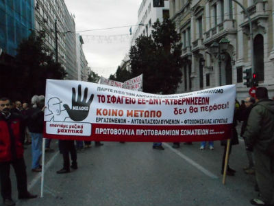 Η πρωτοβουλία πρωτοβάθμιων σωματείων για το συντονισμό, σωματεία, φοιτητικοί σύλλογοι κ.ά. συγκεντρώθηκαν στις 5 μμ στο Υπουργείο Εργασίας.