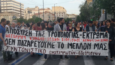 Μαχητική και μαζική διαδήλωση πραγματοποιήθηκε την Τρίτη 19 Απρίλη με την συμμετοχή συλλόγων πρωτοβάθμιας εκπαίδευσης και ΕΛΜΕ, του Συντονιστικού Αναπληρωτών, της Πρωτοβουλίας Αναπληρωτών και των δυνάμεων του ΠΑΜΕ στην εκπαίδευση. Βασικά αιτήματα ήταν οι μόνιμοι μαζικοί διορισμοί εναντία στην διάταξη της κυβέρνησης ΣΥΡΙΖΑ-ΑΝΕΛ που καταργεί την προϋπηρεσία και απολύει αναπληρωτές. Το Συντονιστικό Αναπληρωτών και Αδιόριστων επιχείρησε να ανέβει στο περιστύλιο της βουλή, αλλά εμποδίστηκε από τα ΜΑΤ.