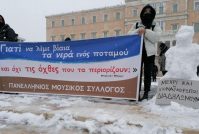 Κινητοποίηση του Πανελλήνιου Μουσικού Συλλόγου στο Σύνταγμα μέσα στα χιόνια!