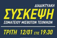 Διαδικτυακή σύσκεψη Σωματείου Μισθωτών Τεχνικών, Τρίτη 12/1, 19:30 & έκτακτη οικονομική εξόρμηση