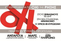 Η κατάσταση που καλείται το σύνολο της κοινωνίας να διαχειριστεί σήμερα είναι εξαιρετικά κρίσιμη. Οι κυρίαρχοι θεσμοί αδυνατούν πλέον να δώσουν τη λύση στην κρίση που με καρκινικό τρόπο διαλύει τον κοινωνικό ιστό, κάνοντας εμφανές ότι η σωτηρία του συστήματος...Συγκέντρωση για το ΟΧΙ της ΡΗΞΗΣ, Πέμπτη 2/7