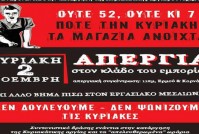 Απεργούν αύριο Κυριακή οι εργαζόμενοι στο χώρο του εμπορίου κλιμακώνοντας τον αγώνα τους ενάντια στα σχέδια κυβέρνησης και εργοδοτών να καταργήσουν την Κυριακάτικη αργία. Σωματεία,εργατικά σχήματα και συλλογικότητες από τις γειτονιές, ανταποκρινόμενοι στο...Κυριακή 2/11, απεργία στο εμπόριο: είναι υπόθεση όλων μας!