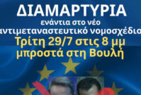Τρίτη 29/7 στις 8.00 μμ στην Βουλή ενάντια στο νέο ρατσιστικό νομοσχέδιο φυλακίσεων, προστίμων, απελάσεων ΚΑΛΕΣΜΑ ΣΕ ΔΙΑΜΑΡΤΥΡΙΑ ΤΡΙΤΗ 29/7, 8.00 μμ ΜΠΡΟΣΤΑ ΣΤΗ ΒΟΥΛΗ ΕΝΑΝΤΙΑ ΣΤΟ ΝΕΟ ΡΑΤΣΙΣΤΙΚΟ ΝΟΜΟΣΧΕΔΙΟ ΦΥΛΑΚΙΣΕΩΝ, ΠΡΟΣΤΙΜΩΝ & ΑΠΕΛΑΣΕΩΝ ΠΡΟΣΦΥΓΩΝ ΚΑΙ ΜΕΤΑΝΑΣΤΩΝ...Κοινό Δελτίο Τύπου για το νέο αντιμεταναστευτικό Νομοσχέδιο